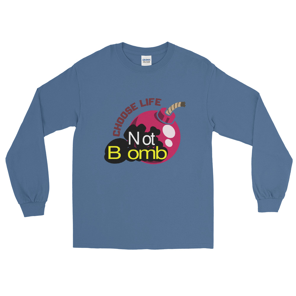 Men’s Long Sleeve Shirt with Choose Life Not Bomb