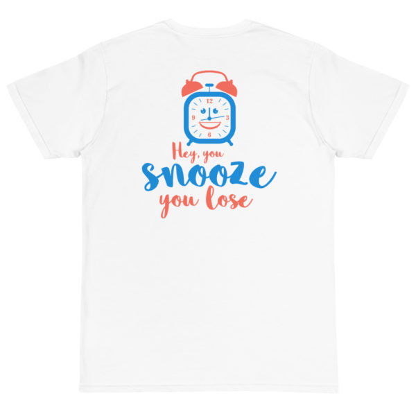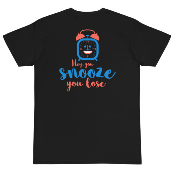 Be the first to review “Organic T-Shirt back Logo with Hey You Snooze You Lose”